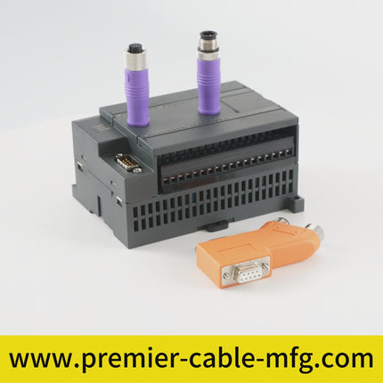 D-SUB Bus Connector, Jack Design, 9-Pole Female Contacts, D-Sub 9-Pin Socket, with Two Cable Feeds at 35° on Dual Terminal Rows. Suitable for CAN, CANopen, and SafetyBus Systems. Premier Cable Part No.: PCM-0633