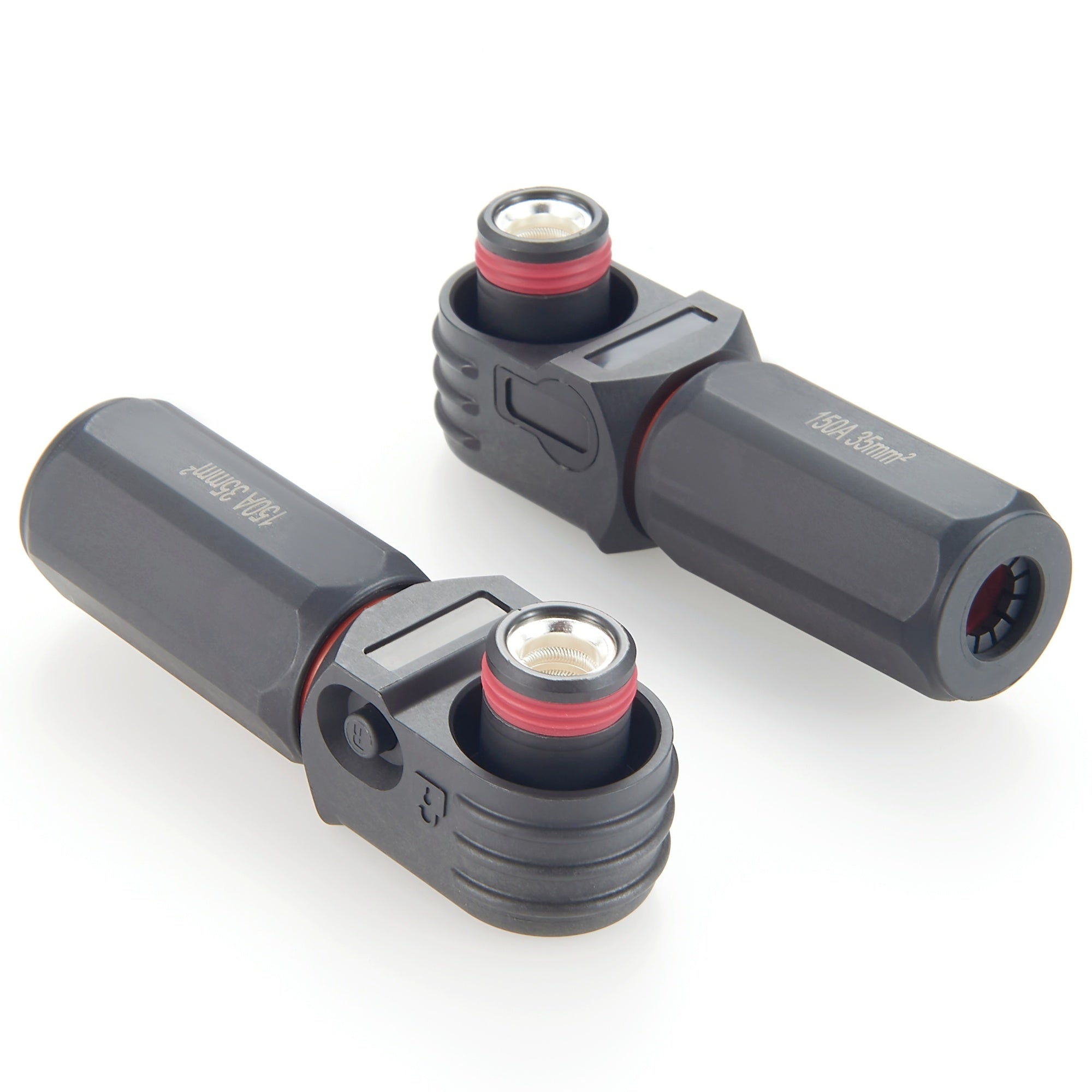 Energy Storage Battery Power Connector Rated at 150A with 8.0mm Terminals, Black Housing for System-Side Use, Supporting 150A High-Current Connection, Premier Cable P/N: PCM-150A-BL