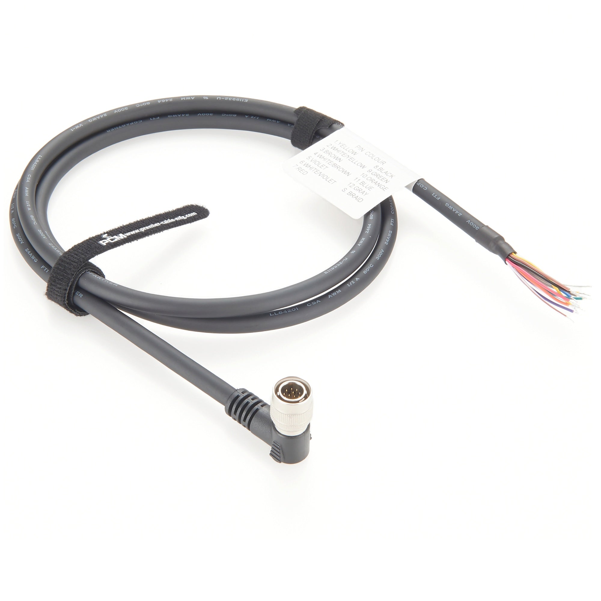 Hirose 12-Pin HR10A-10P-12P Right Angle Industrial Camera Power & GPIO Trigger Cable with 24AWG High-Flex 12-Core Cable for Sony, Panasonic, Hitachi, JAI, Basler, Toshiba, Premier Cable: PCM-S-0554