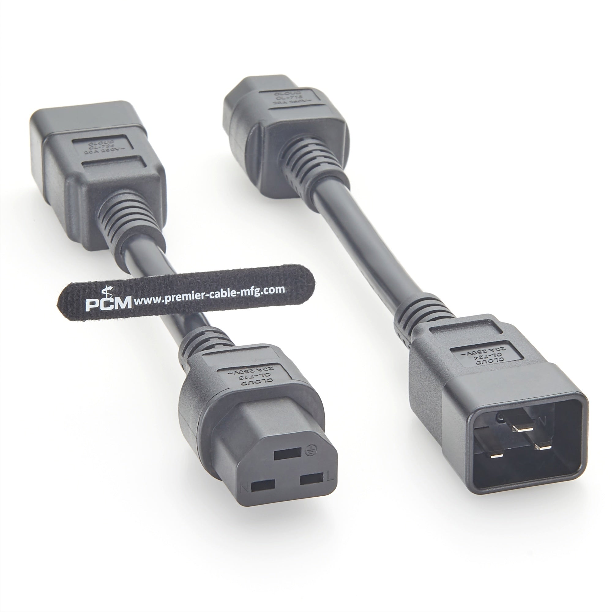 C20 to C21 20A heavy-duty cable connects high-output devices with C19/C22 power connectors commonly found on high-powered IT equipment.