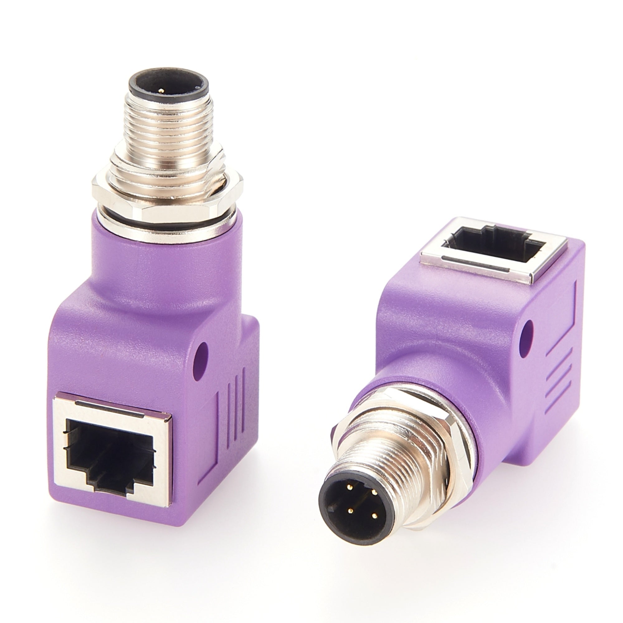 M12 D-Code 4 Pin to RJ45 Right Angle Adapter