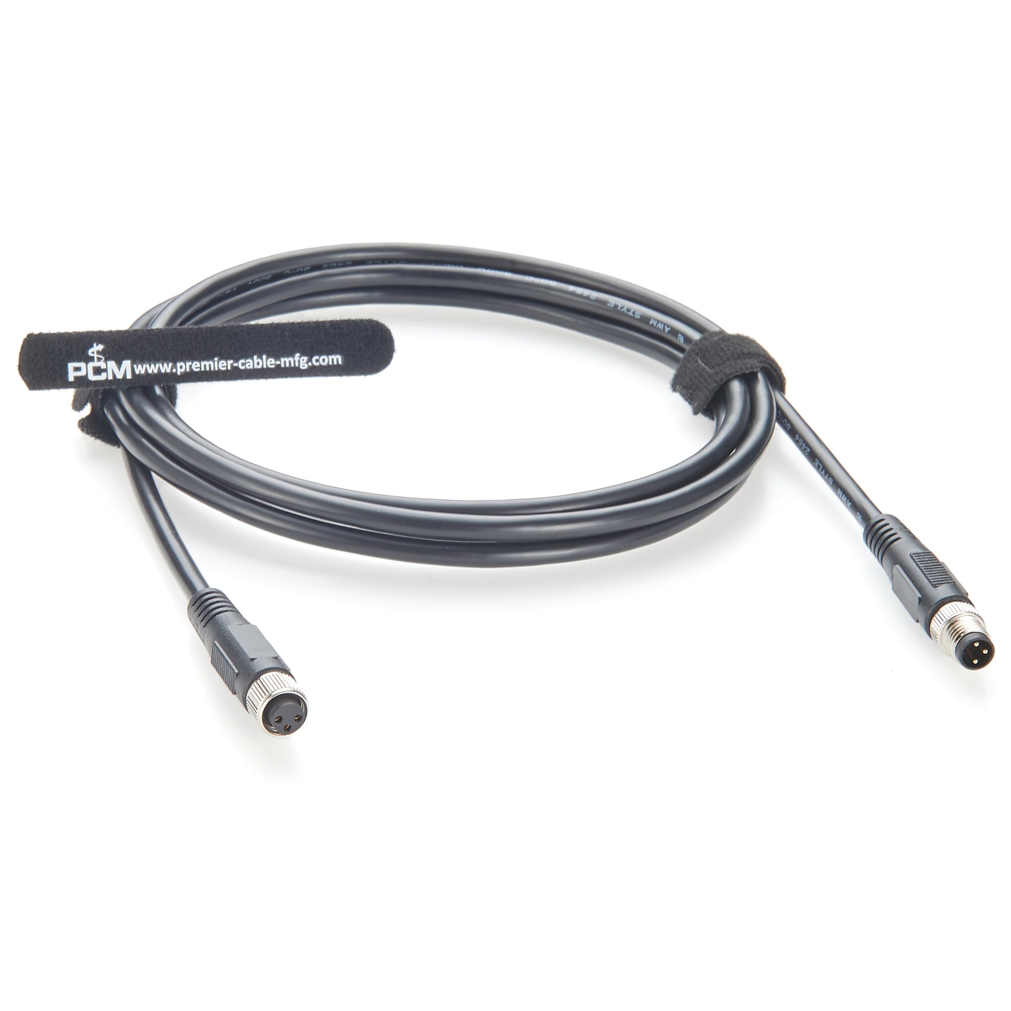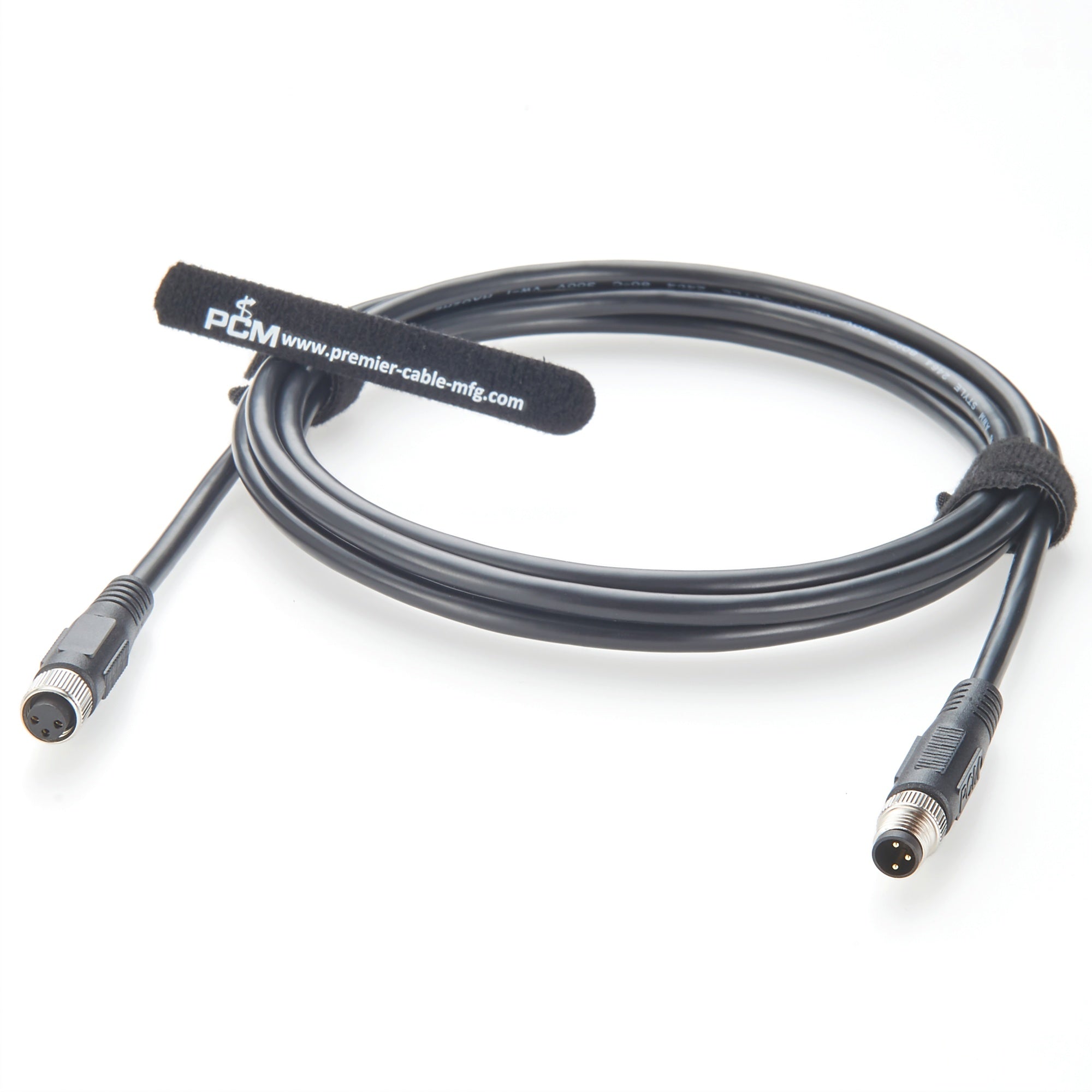 High-quality M8 3 pin sensor extension cable, A-coded male to female connector, shielded 22AWG wire, IP67 waterproof, ideal for industrial automation and sensors, Premier Cable # : PCM-HD-0167