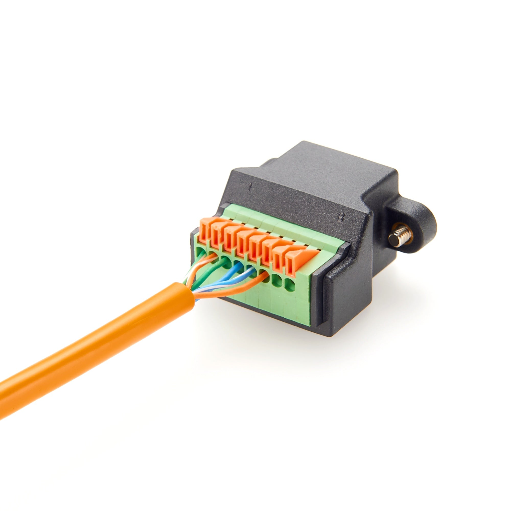 Ethernet RJ45 Female Socket to 2.54 mm Push-Button Spring Terminal Block, Allows Quick and Easy Installation without Soldering or Screwdrivers, Tool-Free Wiring. It Supports 26–20 AWG Solid or Stranded Wires, Premier Cable Part Number: PCM-0529