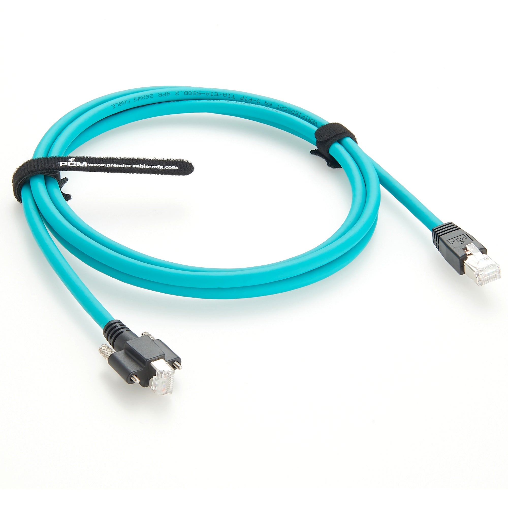 High Flex RJ45 to RJ45 Vertical Locking CAT6A GigE Vision Cable, 10G Speed, Compatible with Teledyne T911307ACC for Creaform, Basler, SICK, FLIR Vision Camera System, Premier Cable Part Number: PCM-S-0566